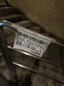 地下を一周すると、入り口と同じ同じ階段を登って地上階へ帰ります。この日一番の息切れタイムです。