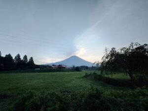 見えましたね。晴天だともっとはっきり富士山!という存在感があるのですが、見えないよりはいいですね。